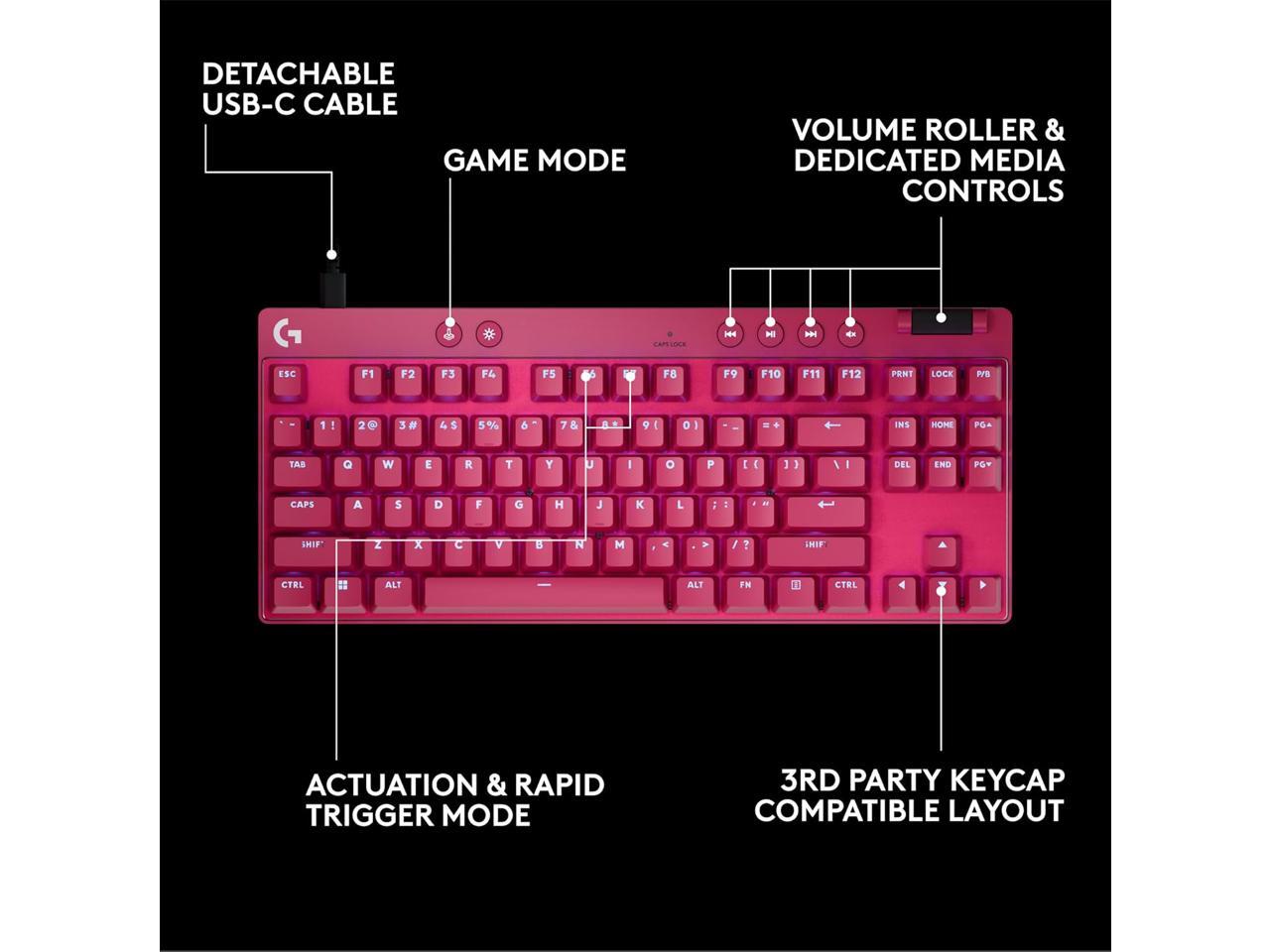 Logitech G PRO X TKL Rapid Wired Gaming Keyboard - Magnetic Analog Switches, RGB - Magenta