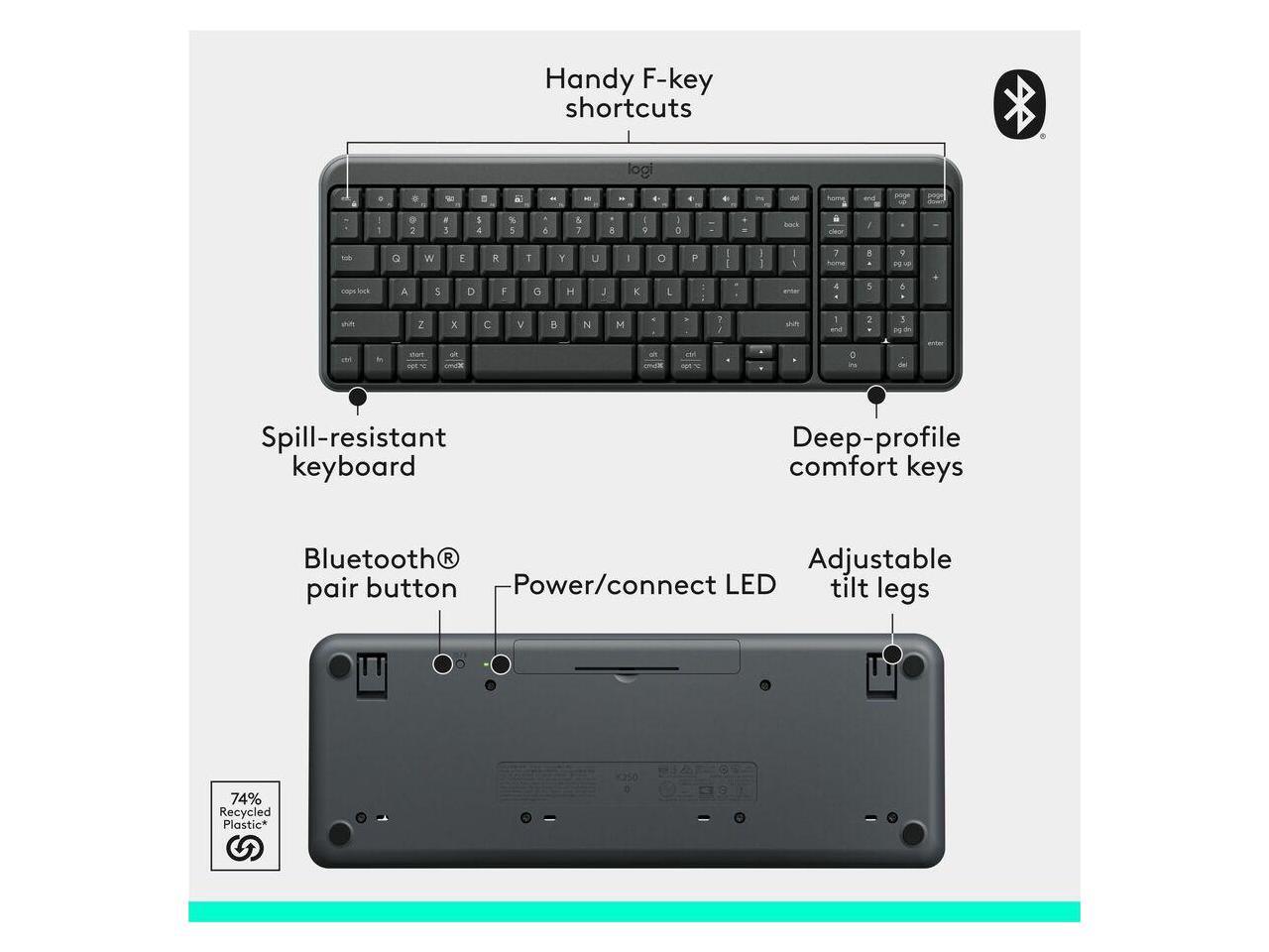 Logitech MK250 Bluetooth Wireless Mouse and Keyboard Combo: Fast & Easy Connectivity, Compact Wireless Keyboard, Ambidextrous Mouse (Graphite) - Wireless Bluetooth Keyboard - Graphite - Wireless B