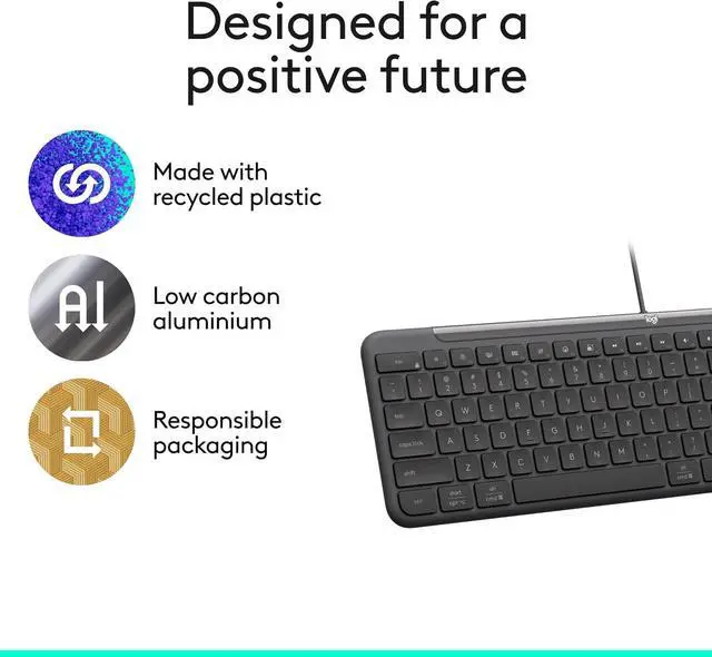 Designed for sustainability: The plastic parts in Signature Slim Wired K620 for Business include 66% post consumer recycled plastic (3)