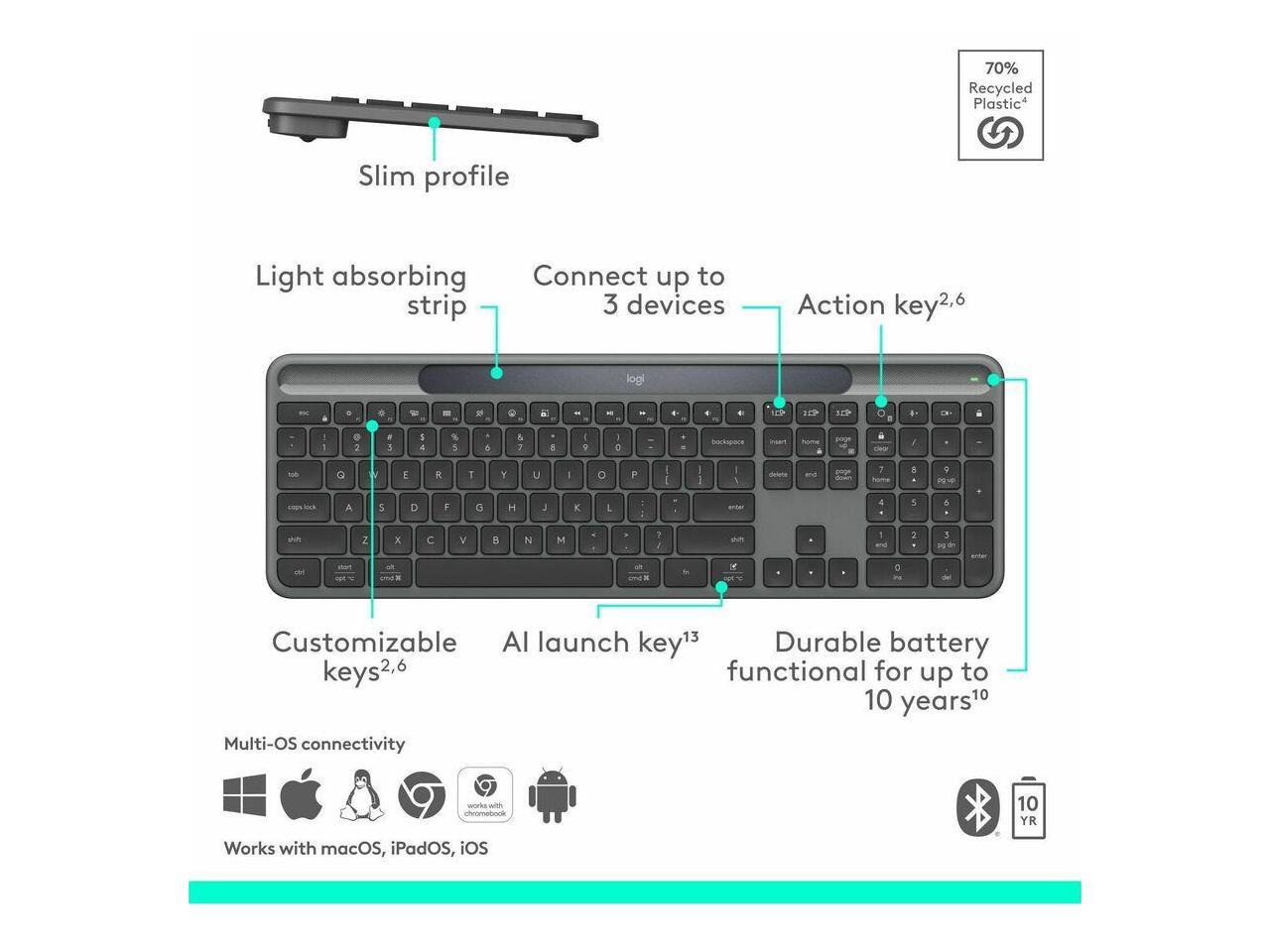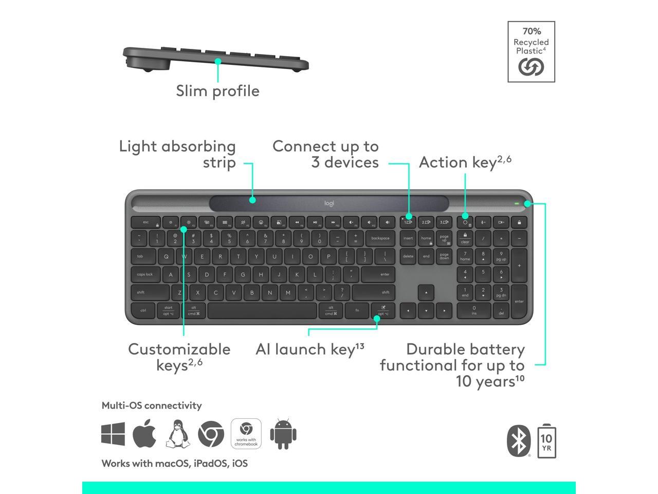 Logitech Signature Slim Solar+ Wireless Bluetooth Keyboard Graphite 920013755
