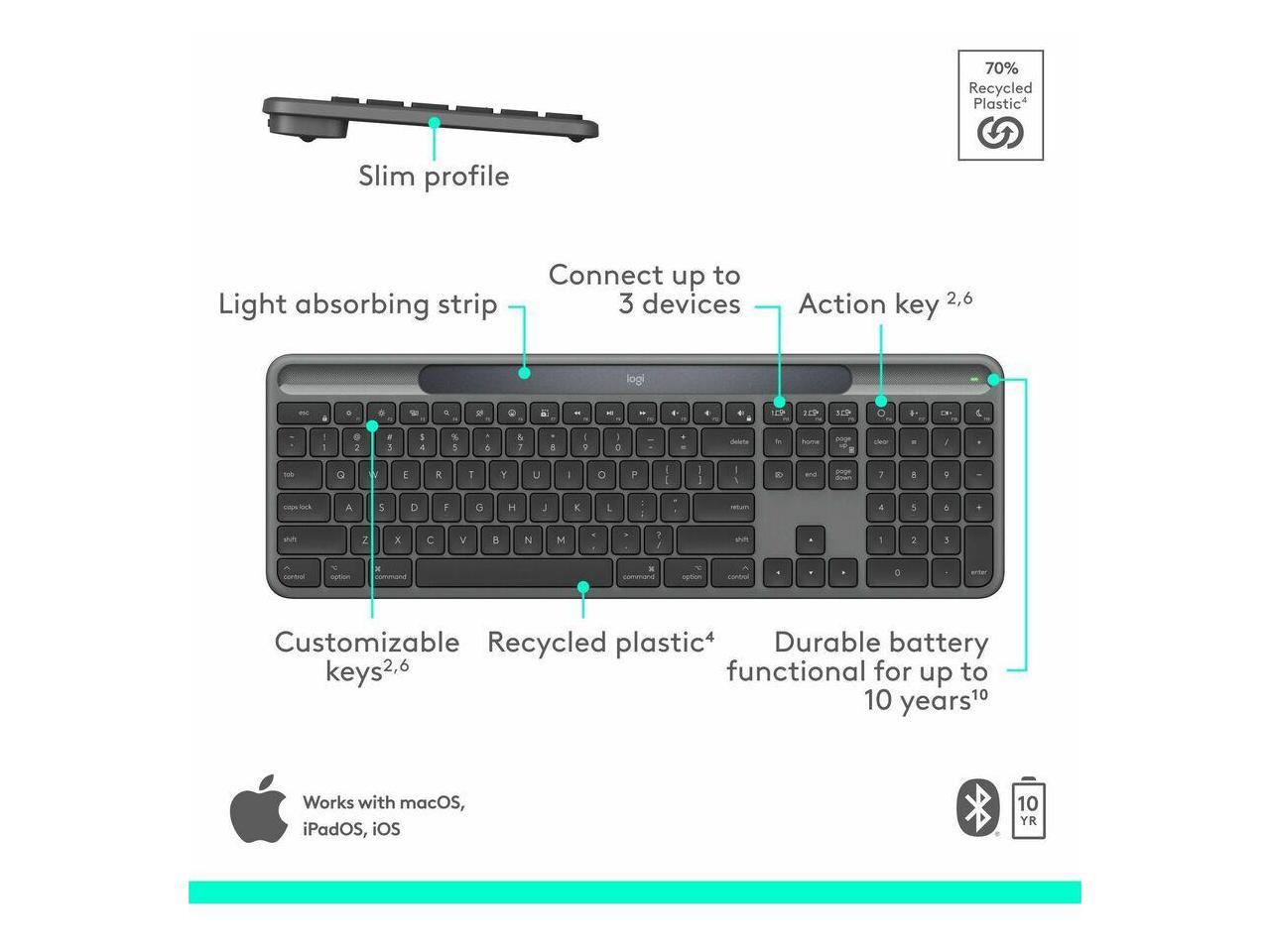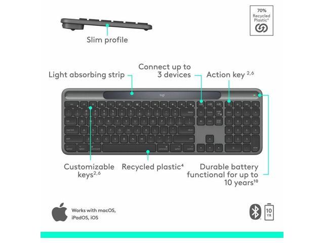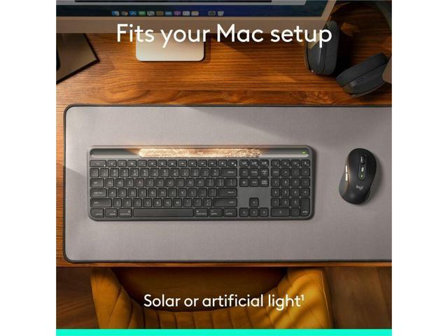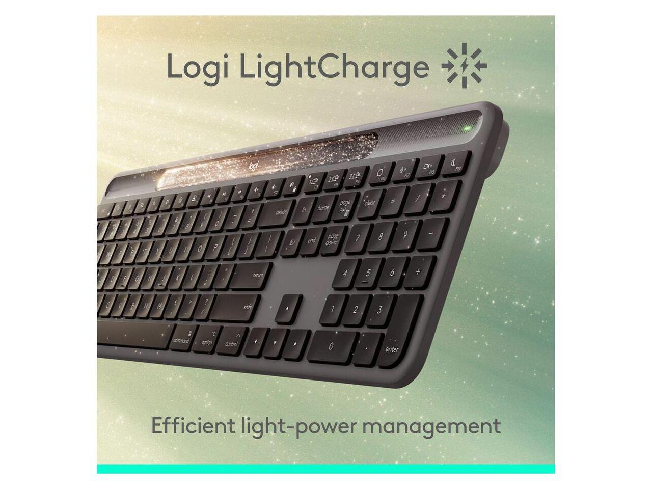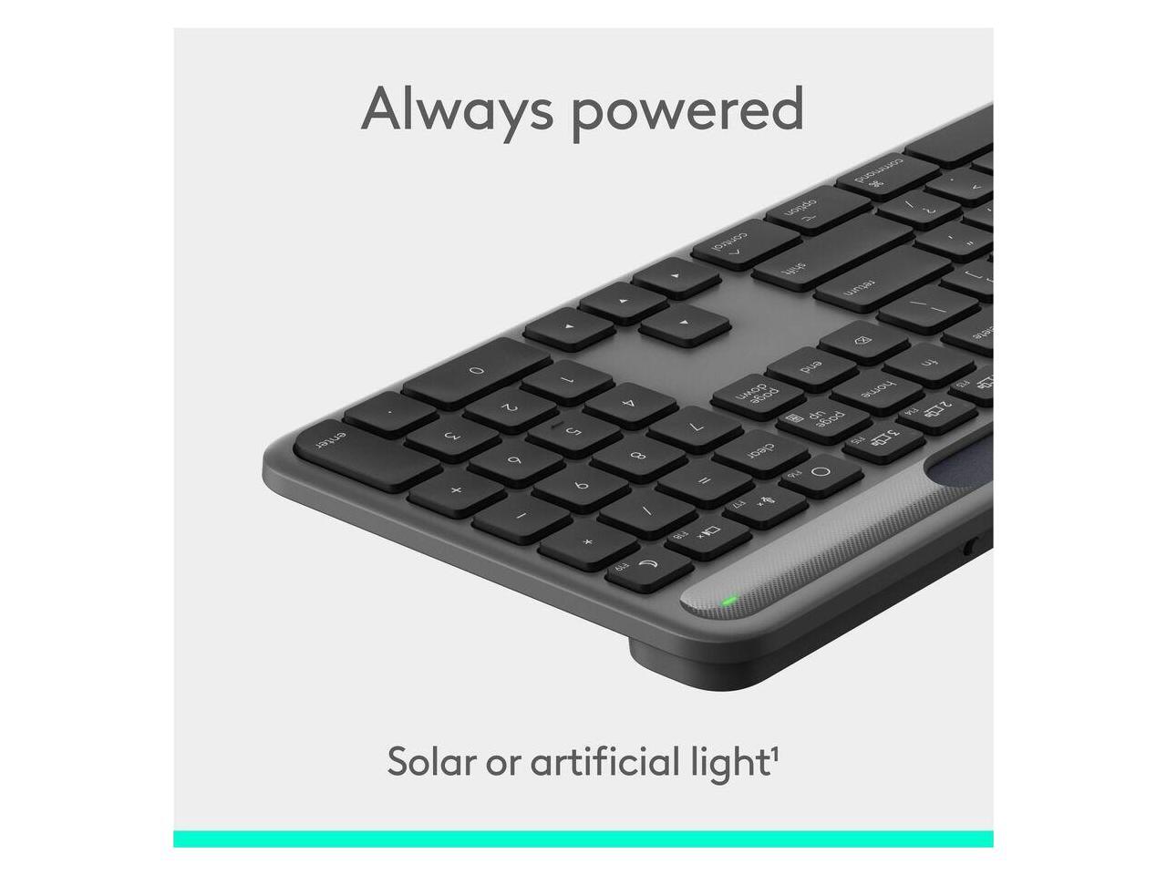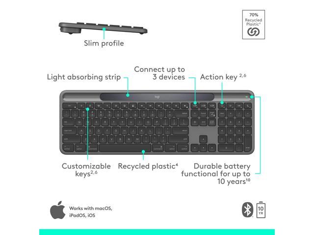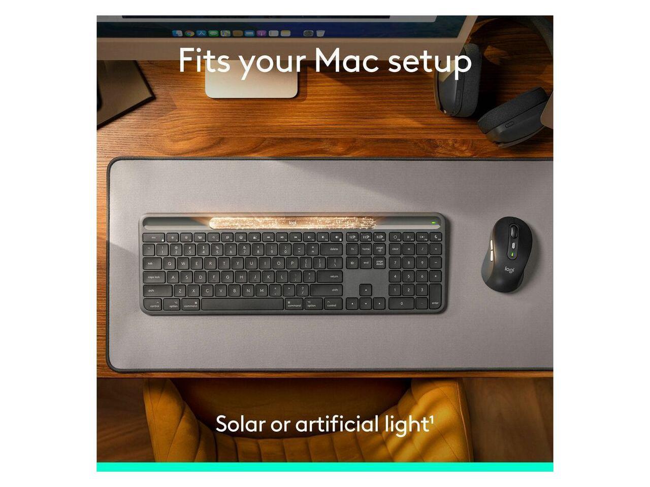 Logitech Signature Slim Solar+ keyboard for Mac, solar and artificial light powered, durable battery that lasts up to 10 years, customizable keys, Bluetooth, Graphite - Wireless Connectivity - Bluetoo
