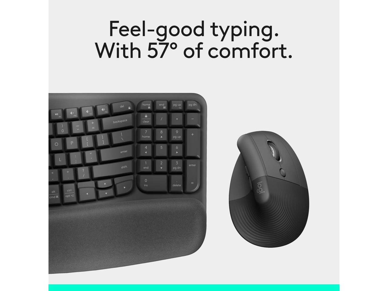 Logitech Wave Keys & Lift Vertical Mouse Ergonomic Wireless Keyboard and Mouse Combo with Cushioned Palm Rest Graphite 920013610