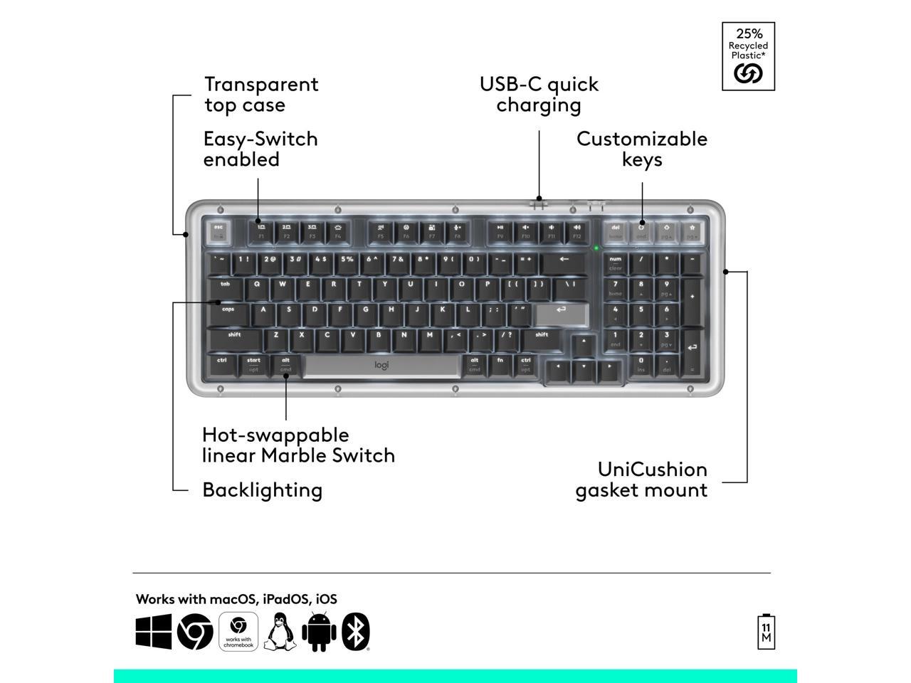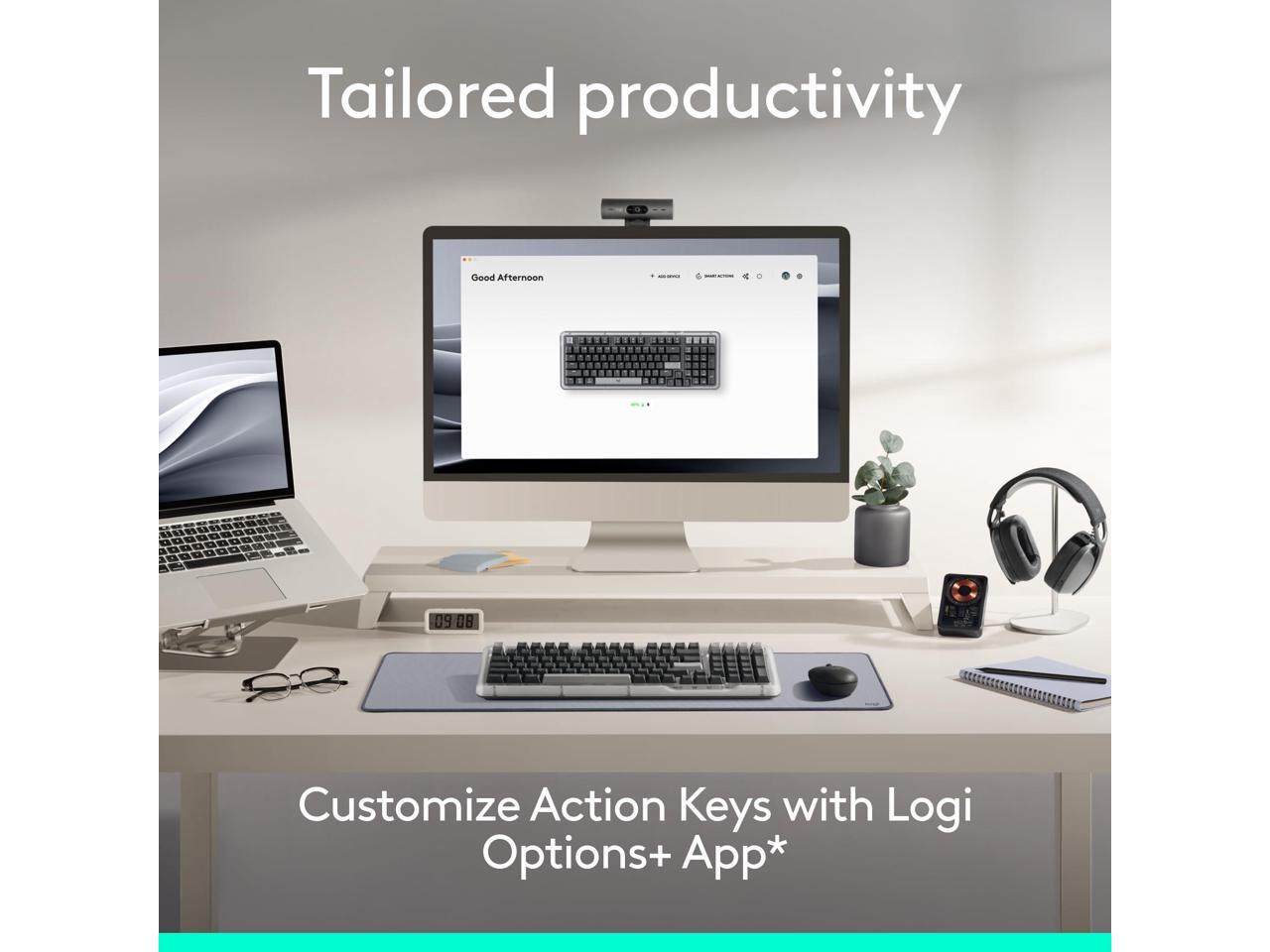 Logitech Alto Keys K98M Wireless Mechanical Keyboard, Customizable Keyboard with Vibration Absorbing Gasket, Backlit Keys, Graphite - Wireless Connectivity - Bluetooth/RF - 2.40 GHz - USB Type A Inter