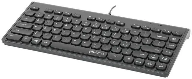Manhattan Slim Wired USB Mini Keyboard - Cable Connectivity - USB Type A Interface - 82 Key(s) - Linux, ChromeOS, Windows 7, Windows 8.1, Windows 10, Windows 11 - Notebook, Desktop Computer - PC - ABS