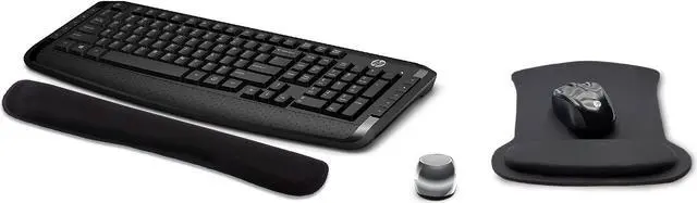 HP Wireless Keyboard & Mouse 300 PC Accessories Bundle with Gel Pads & Micro Bluetooth Speaker is made to maximize your computer productivity & sound quality during work, school, vacation, or travel.