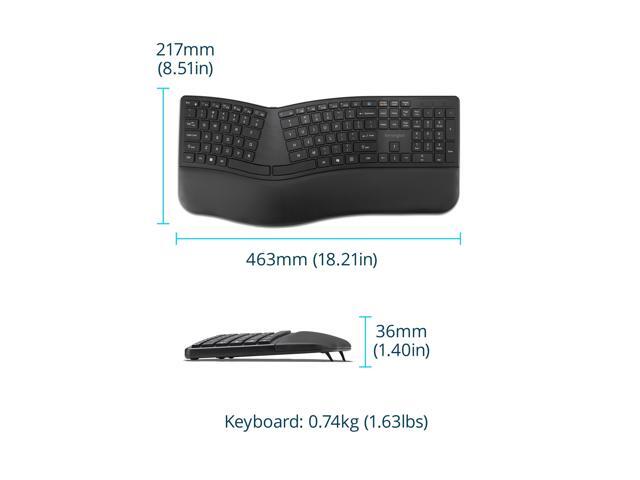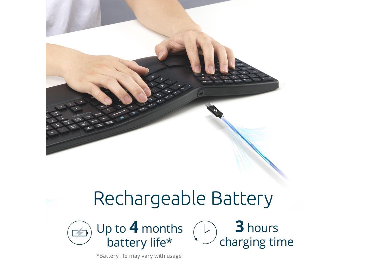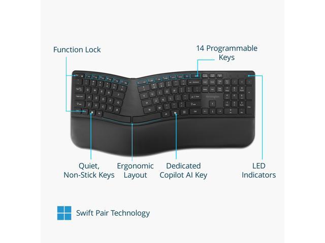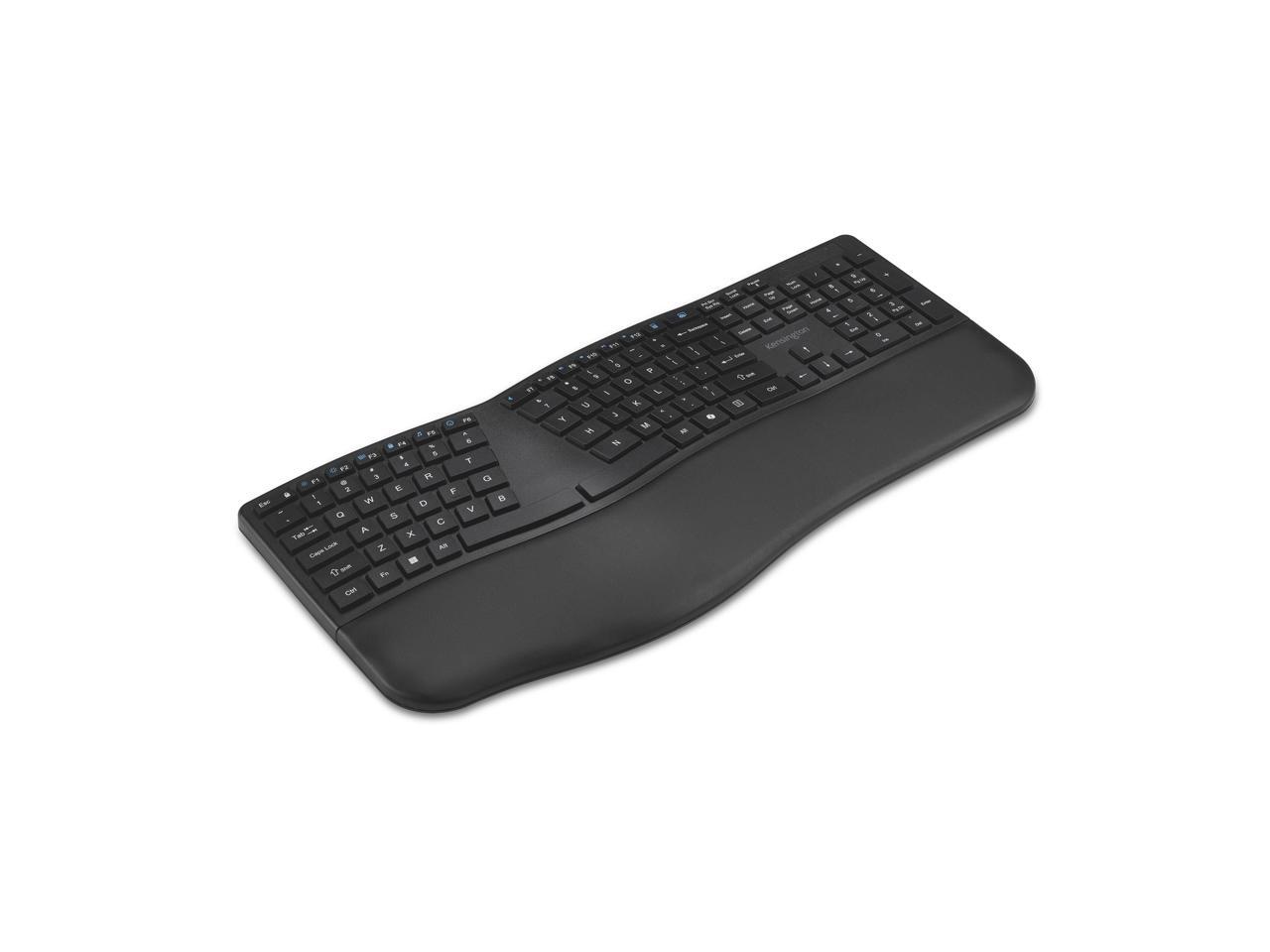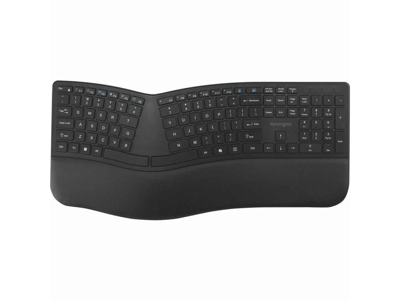 Kensington Pro Fit Ergo KB680 EQ Rechargeable Keyboard - Wireless Connectivity - Bluetooth/RF - 5.4 - 2.40 GHz - USB Type A Interface - CoPilot Hot Key(s) - Windows, Mac OS - PC, Mac - Black