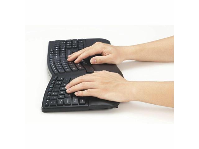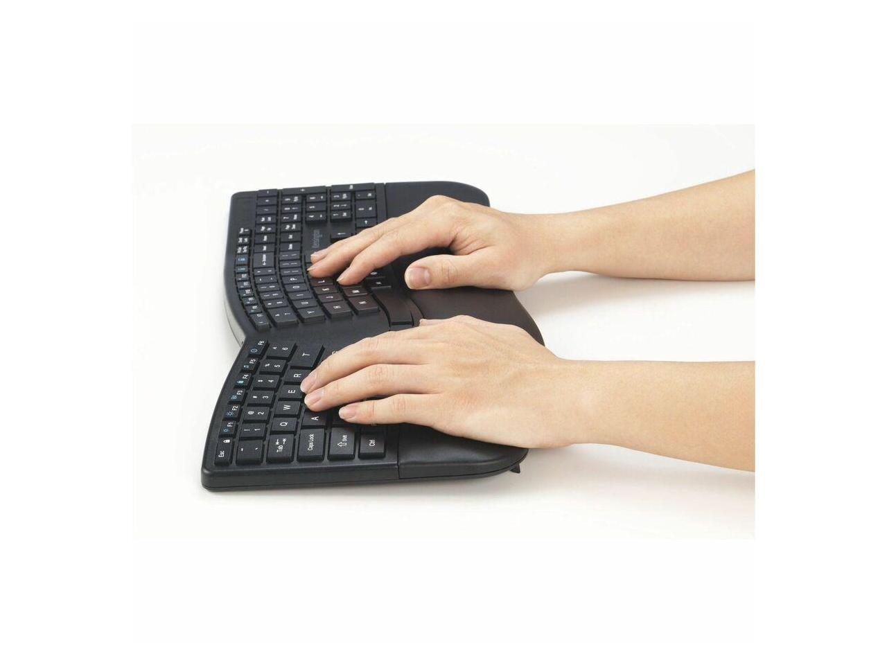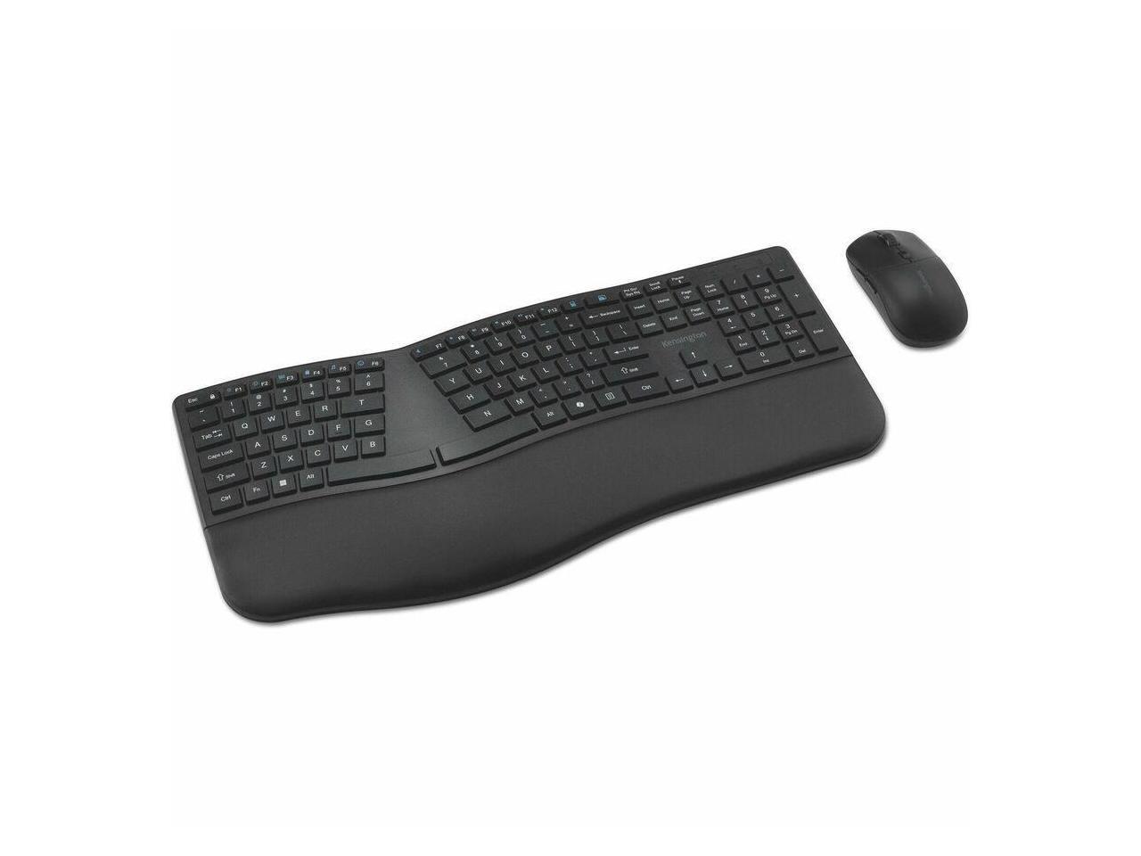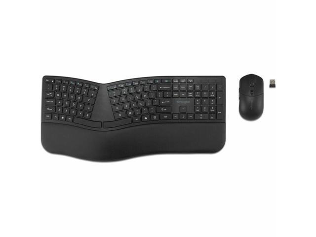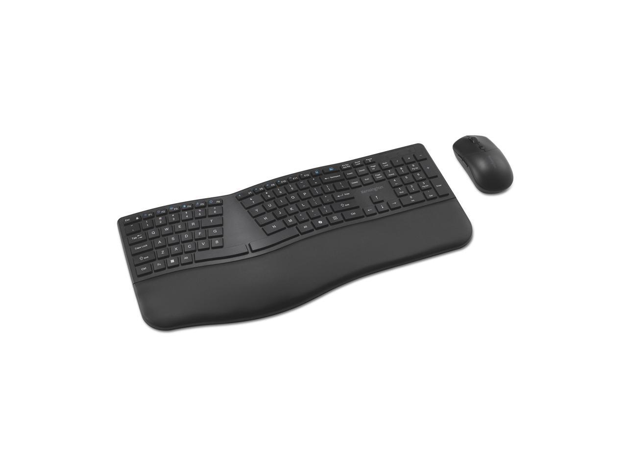 Kensington Pro Fit Ergo KM680 EQ Rechargeable Desktop Set - USB Type A Wireless Bluetooth/RF 5.4 2.40 GHz Keyboard - Black - USB Type A Wireless Bluetooth/RF Mouse - Optical - 2400 dpi - 6 Button - Bl
