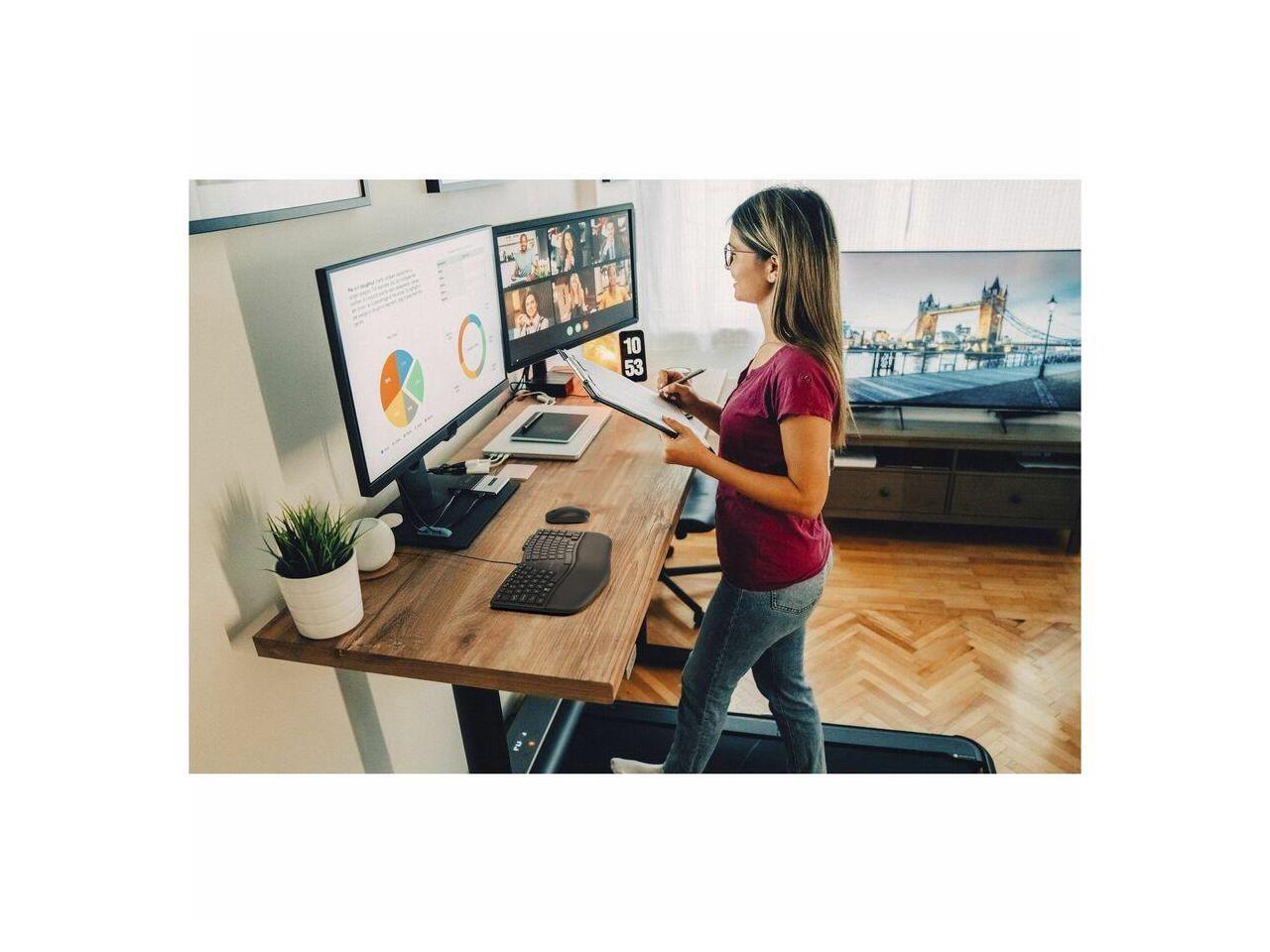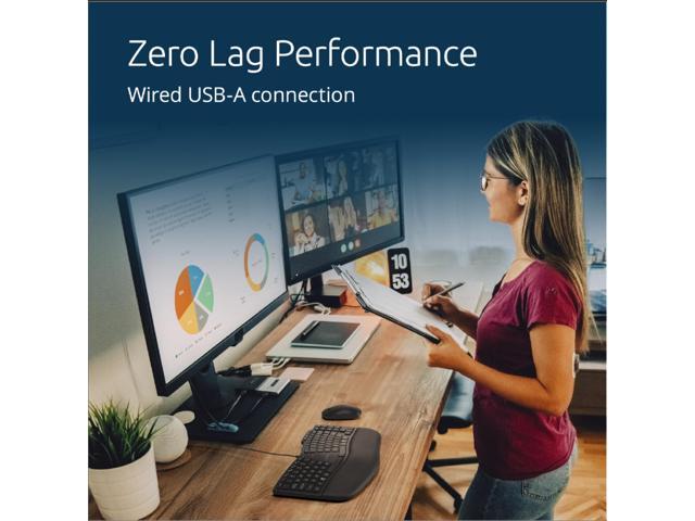 - Ergonomic Design - The thoughtfully designed compact curved key layout, built-in wrist pad, and front keyboard legs support optimal hand and wrist positioning for all-day ergonomic comfort and productivity.