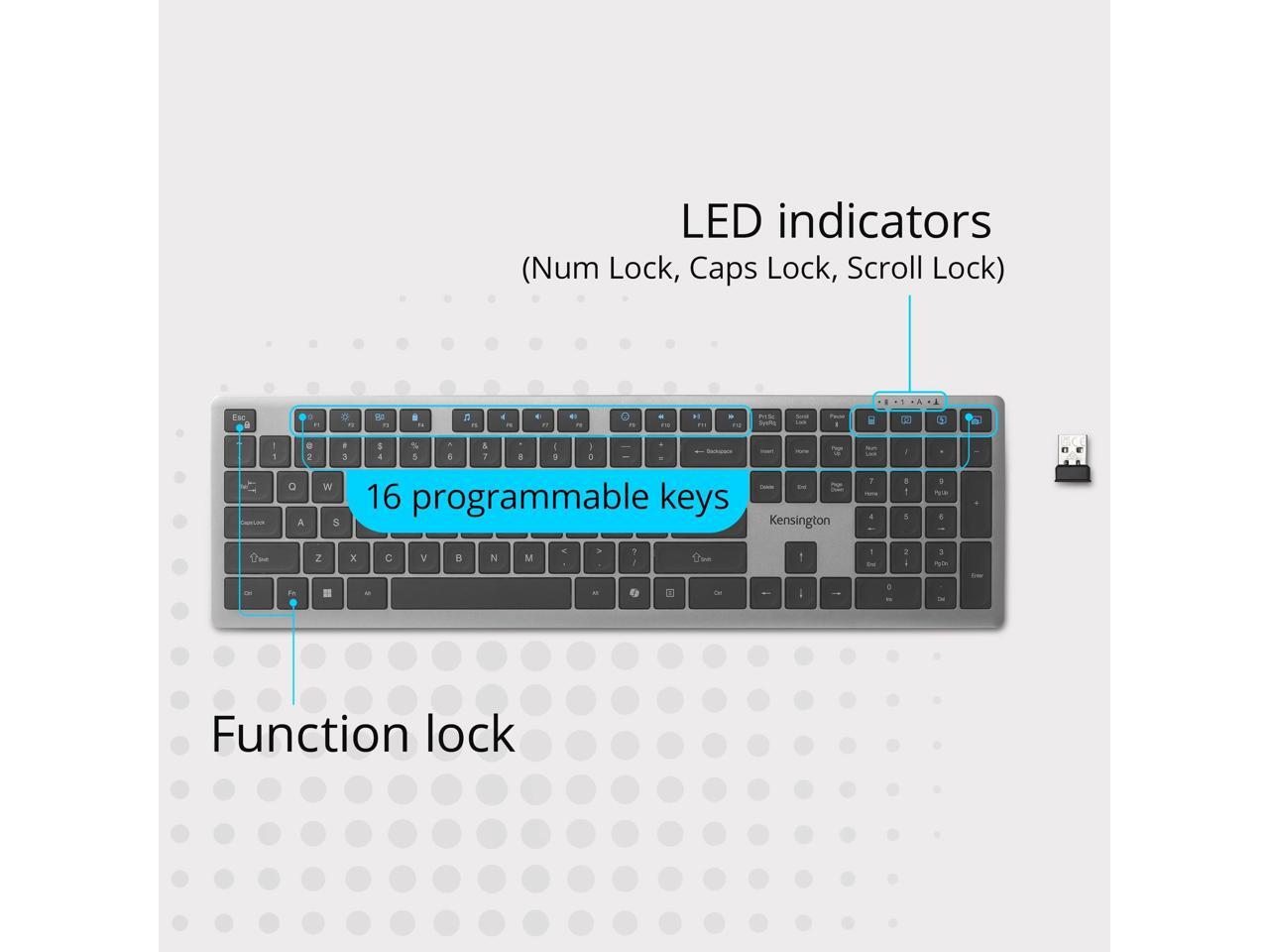 Kensington KB535 Wireless Keyboard, Bluetooth & 2.4GHz Connection, Full-Size Layout, Quiet Scissor-Switch Keys, Programmable, Copilot Hotkey, Compatible with Windows, Black (K75408NA)