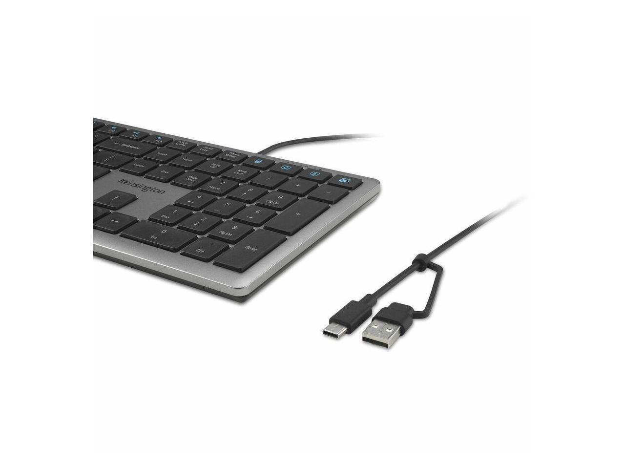 Kensington KB515 EQ Wired Keyboard - Cable Connectivity - Full-size - USB Type A, USB Type C Interface - 108 Key(s) - CoPilot, F-Lock Hot Key(s) - Windows, ChromeOS, macOS - PC, Mac - Recycled Plastic
