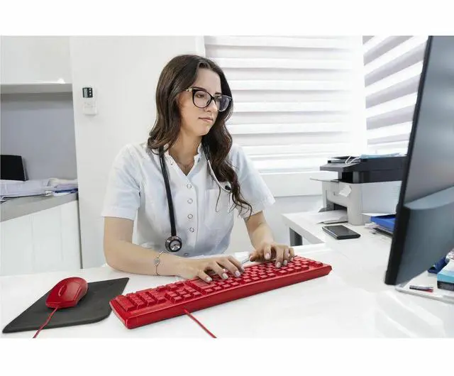 In busy, shared workspaces, standard keyboards quickly become breeding grounds for germs, grime, and spills, leading to hygiene concerns and potential equipment damage. The Pro Fit™ Wired Washable Keyboard is the ideal solution, featuring a fully washable and spill-proof design that can be rinsed or disinfected with ease. Rugged yet comfortable, the Pro Fit™ washable keyboard offers a full-sized layout and a dependable wired connection. Users can focus on their tasks without worrying about spills or germs affecting their workflow, making it the ideal choice for settings where cleanliness and reliability are essential.