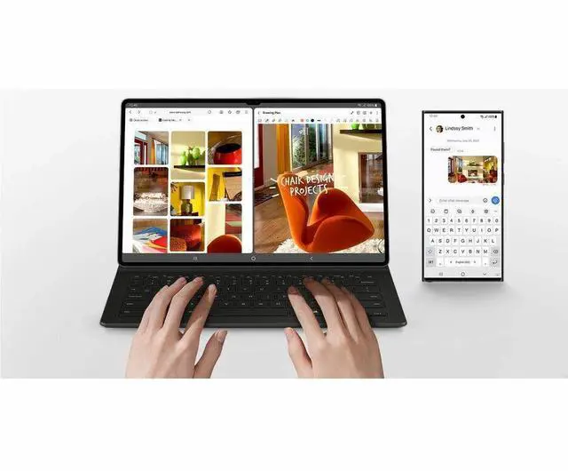 There's even a compartment to hold your S Pen for convenience. Get the full keyboard experienceThe Book Cover Keyboard Slim has everything you'd want from a keyboard. Pair your tablet and get to work writing emails or drafting documents with ease. Combined with DeX Mode, the keyboard delivers a convenient PC-like experience. Enhance your productivity with wireless sharingWith Wireless Keyboard Sha