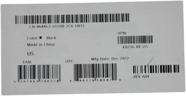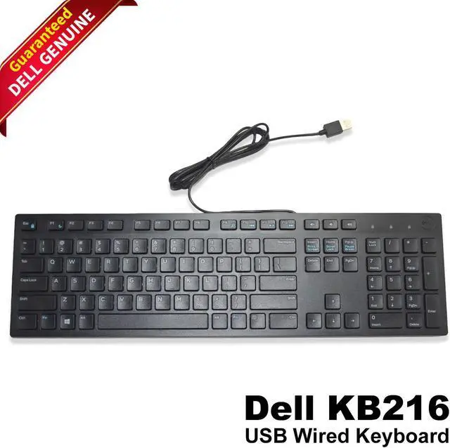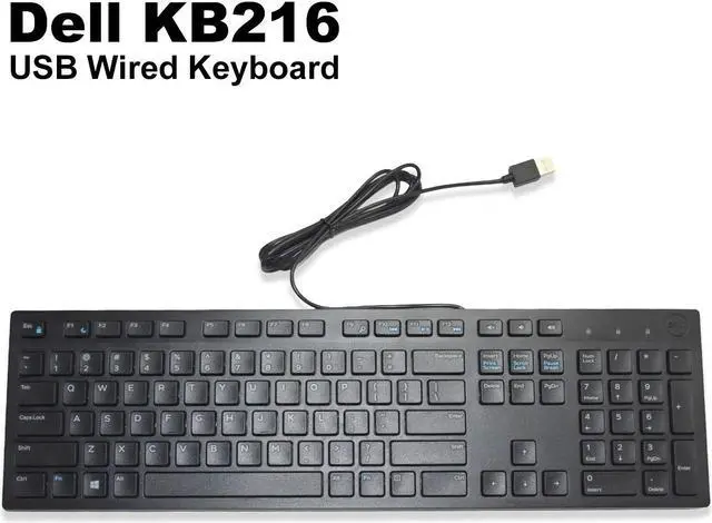 Dell KB216 Slim USB Keyboard (part number 644G3) is a compact and sleek wired keyboard featuring 104 keys in an English QWERTY layout. It is designed for comfortable and efficient typing, making it ideal for both office and home use. The black finish gives it a professional look, and the slim design helps save desk space while maintaining a full keyboard functionality. The keyboard connects via USB for reliable and straightforward usage.