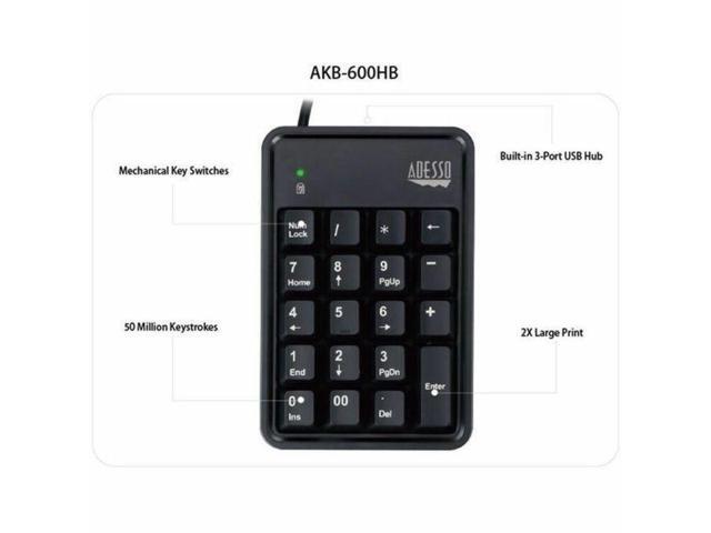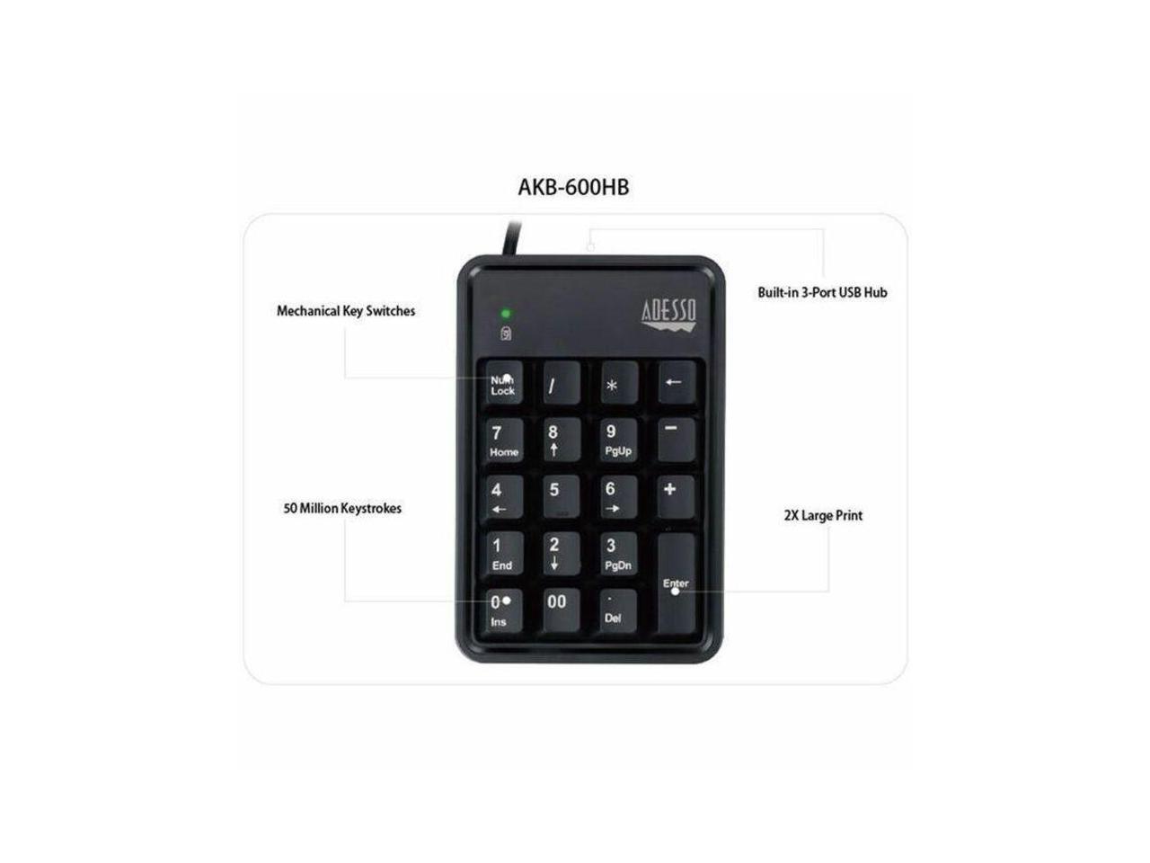 Adesso Easytouch 600UB Keypad - Cable Connectivity - Compact - USB Interface - 19 Key(s) - Windows 7, Mac OS - PC, Mac - Cherry MX Red Keyswitch