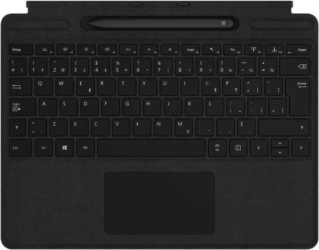 The Microsoft Surface Pro X Signature Keyboard with Slim Pen Bundle (French Layout) provides more versatility to how you use your Surface Pro X.