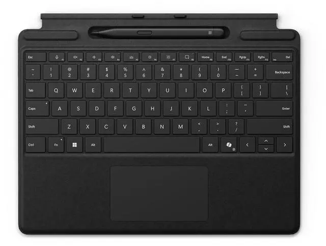 Next-level versatility comes in the perfect, premium keyboard, featuring a large glass trackpad and luxurious, Alcantara material covering. Ready to pair with Surface Pro (11th Edition), Surface Pro 9 and Surface Pro 8. Always at your fingertips An exceptional typing experience Type in comfort with Surface Pro Keyboard. Sleek and compact, it performs like a traditional laptop keyboard, complete with a large trackpad for precise control and navigation. Adjusts instantly Work your way anywhere. Surface Pro Keyboard is designed to adjust to virtually any angle. Click into place and use with the Surface Pro (11th Edition), Surface Pro 9 or Surface Pro 8 Kickstand open for a complete laptop.