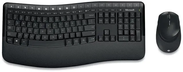 Dress up your desktop with this beautifully modern keyboard and mouse set. With a tasteful mix of glossy and textured black surfaces, this desktop set will have you appreciating its good looks every day. The ergonomist-approved curved keyboard encourages you to use a more natural posture that aligns your arms, wrists, and hands for greater comfort