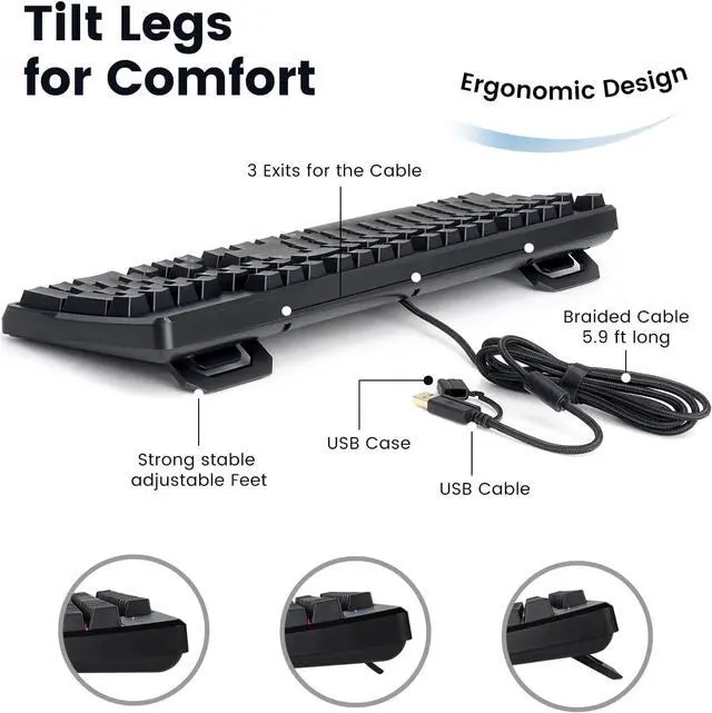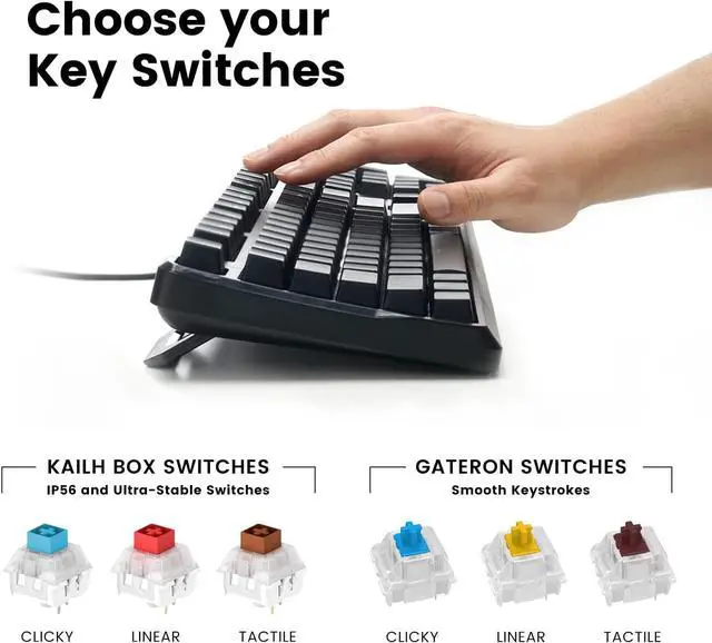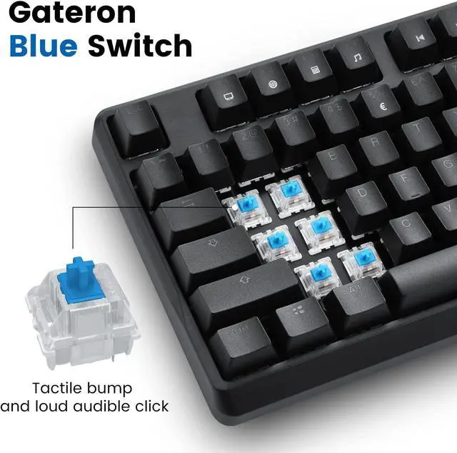 GATERON CLICKY SWITCH: Gateron blue mechanical switch offers a unique clicky typing feeling and a noticeable audible feedback; 60 G actuation force and 4 mm travel distance; full anti-ghosting and N-key rollover capabilities, you can actuate a combination of modifier key with total accuracy