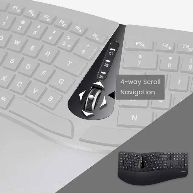 SPLIT-KEY KEYBOARD - A one-piece design that simply separates the keys into two groups for the left and right hand to reduce bending your wrists outward while typing; Designed specifically in order to reduce the pressure from your hands while computing and give you the benefit to type relaxed and effortlessly
