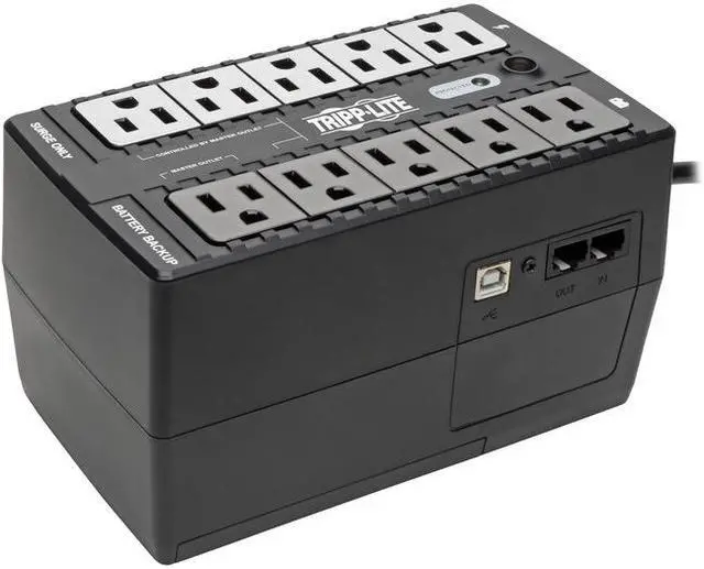 Tripp Lite\\'s ECO550UPS ECO Series Energy-Saving Standby UPS System with USB Port & Outlets offers complete protection from blackouts, brownouts and transient surges. Supports GREEN energy savings via built-in "ECO" outlets that automatically power off unused computer accessories like printers or multimedia speakers when the computer is not in use. Full load efficiency rating of 99% also offers energy-savings and cooler operation by limiting UPS power consumption to only 3 watts! Eco-friendly design meets strict RoHS environmental standards. Provides uninterrupted transition to battery-derived AC output during brownouts and power failures with enough runtime to save and shutdown connected equipment without data loss. Offers complete protection in an ultra-compact desktop or wall-mountable housing. Includes 4 battery supported outlets for computer, monitor and two vital system peripheral, plus 4 additional surge suppression-only outlets for accessories not requiring battery support. Three of the surge-only outlets are designated "ECO" outlets that can be configured to automatically power-off when the computer enters standby mode or is shutdown. USB port enables UPS configuration options and unattended system shutdown without data loss in the case of extended power failure. PowerAlert software is available via free download from www.tripplite.com. USB cable included. Built-in single line RJ11 phone suppression protects modem, fax machine, cordless phone or other accessories with a dialup/DSL phone connection. Built-in audible alarm and front panel LEDs offer continuous status information regarding line and battery power operation. 550VA / 300 watt power handling ability supports entry-level PC systems for up to 17 minutes during power fail conditions. 2 year warranty. $100,000 connected equipment insurance (USA, Puerto Rico and Canada Only). . Ideal for PCs & peripherals . 99% line-mode efficiency saves energy & operating costs . Saves up to $50 per year . Telephone/DSL protection . ECO outlets save power by automatically turning off connected accessories when the computer is not in use . Up to 11.3-min half-load run time . USB port works with free PowerAlert software for unattended shutdown . Includes USB cable . ENERGY STAR qualified . RoHS compliant . 3-year product warranty . $100,000 Ultimate Lifetime Insurance . Output power capacity: 550VA/300W . 8 outlets--4 UPS/surge, 1 surge only, 3 ECO/surge outlets