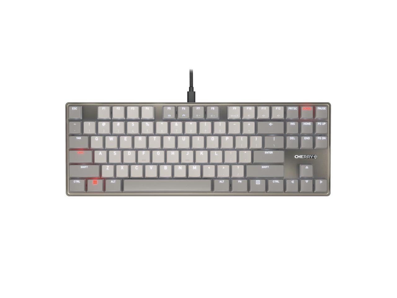 CHERRY KC 500 MX LP TKL MX LP Mechanical Low-profile Keyboard in a Slim Design - Warm Grey, Wired Compact Keyboard with Backlighting, MX2A IVORY Switches, PBT Keycaps, Foldable Feet, Slim Design