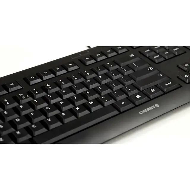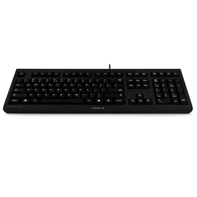 CHERRY KC1000 Membrane Wired Keyboard, Quiet and Low-Noise, Slim and Lightweight, Matte Finish, Full-Size Keyboard Design, 4 Additional Keys, Ideal for Business and Office Use, Black