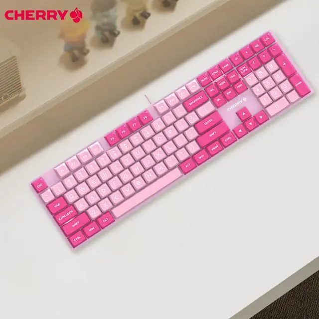 CHERRY KC200 MX Wired Mechanical Keyboard, 108 keys, Candy Color, PBT Keycaps, Multimedia Keys, Full Anti-Ghosting, Ideal for Office and Gaming, Pink Red Switch