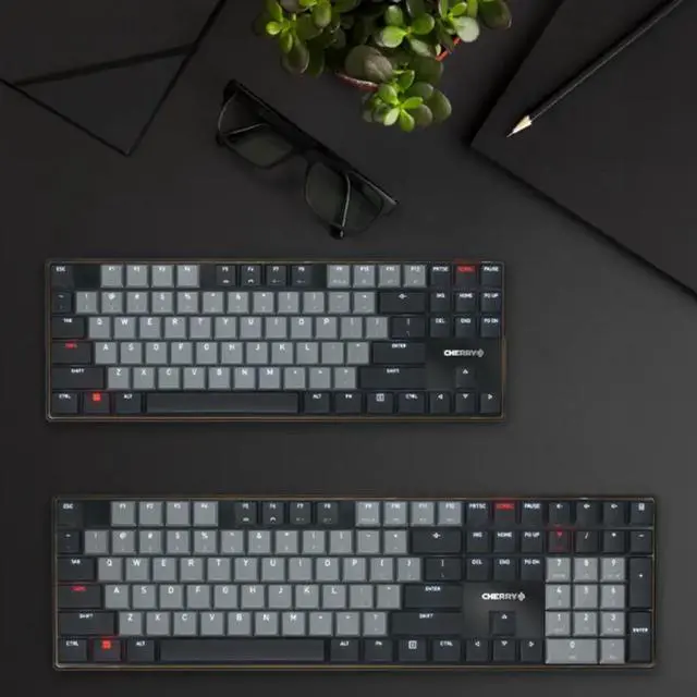 Slim Low-Profile Flagship: Features CHERRY MX-LP low-profile switches, 1/3 shorter than standard MX switches. Offers light, responsive keystrokes with an ultra-slim design for smooth typing.