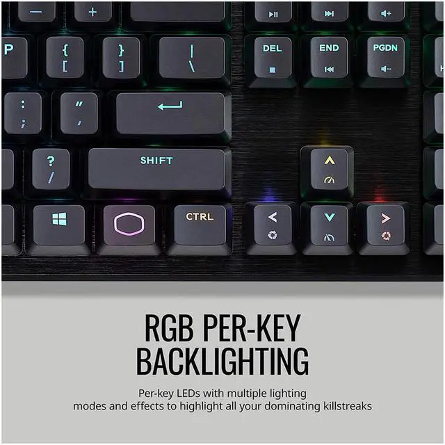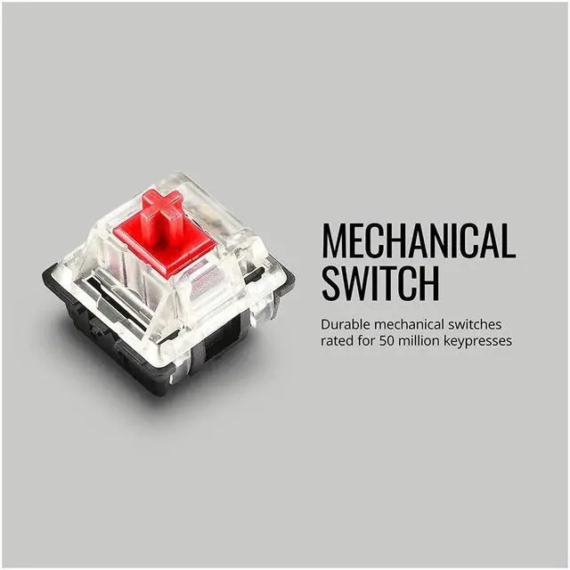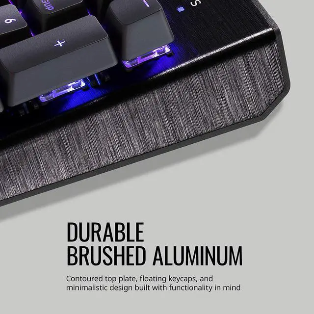 Get a straightforward keyboard that performs well on the battlefield with the CK552 Gaming Keyboard. Mechanical switches rated for 50 million clicks will guarantee your keyboard will stay combat-ready during all your long-lasting skirmishes. On-the-Fly Controls allow customization of your settings like RGB lighting and macros in real time, while software lets you get even further customization. Simply put, the CK552 is a capable tool that gets the job done and looks good while doing so with a curved brushed aluminum top!
