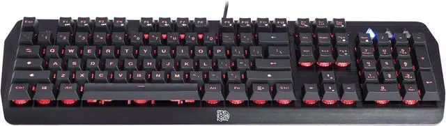 Thermaltake Tt eSPORTS Challenger Edge Aluminum Faceplate 8 Color LED Backlighting Fast Response Key Anti-Ghosting Membrane Gaming Keyboard KB-CHE-MBBLUS-01 The CHALLENGER EDGE Comes with a brand new floating keycaps design, delivering stunning colors under each keycaps that provide gamers a more attractive and in-style look while gaming. Additionally, it was created with a splendid black brushed aluminum faceplate that makes it cooler and more extraordinary. Specification: Back-Light: 8 Color Lighting Effect: Static, Pulse, Pulse Jumping, Spectrum Running Keystroke Lifecycle: 20 Million Anti-Ghosting Keys: 15 Keys Window Tool Hot Keys: 3 # of Game Profiles: 3 # of Macro Keys: 6 Multimedia Keys: 7 Keys Rolling Rate: 125 Hz Wrist Rest: Fixed USB Cable Length: 1.8M (7.09 Foot Long) Dimension: 18.19 x 6.1 x 1.97 Weight: 2.76 lb