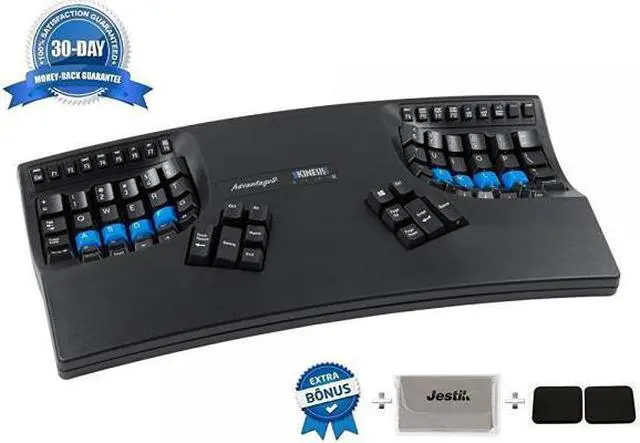 VALUE BUNDLE INCLUDES ADVANTAGE PALM PADS PLUS JESTIK MICROFIBER Kinesis KB600 Advantage2 USB Contoured Keyboard (for PC and MAC) Overview Obviously, the star of value bundle is the Kinesis Advantage2. A total upgrade from the original Kinesis Advantage ergonomic keyboard, the Advantage2 features its patented Contoured Keyboard design and low-force mechanical key switches for maximum comfort and support, minimizing major health issues related to hours of using a keyboard. Long-time advantage users will love the all-new SmartSet Programming Engine that allows users to customize the keyboard without using any additional software or drivers. You don't even need to access the internet.