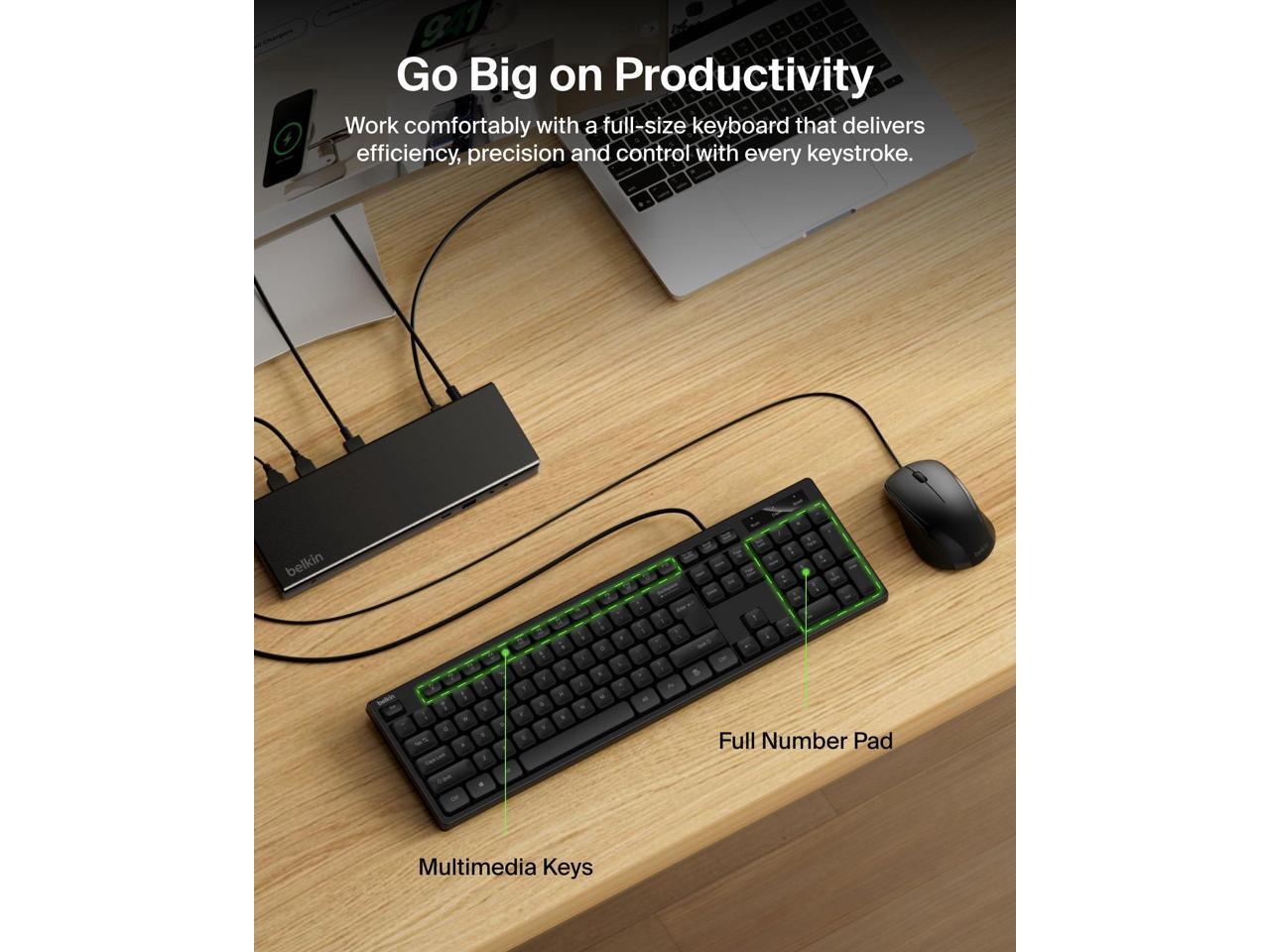 - FULL-SIZE KEYBOARD: Perfect for typing emails, writing reports, or streaming videos on your laptop, desktop, or all-in-one computer, the full-size keyboard features low-profile keys and multimedia shortcuts, so you can work comfortably.*