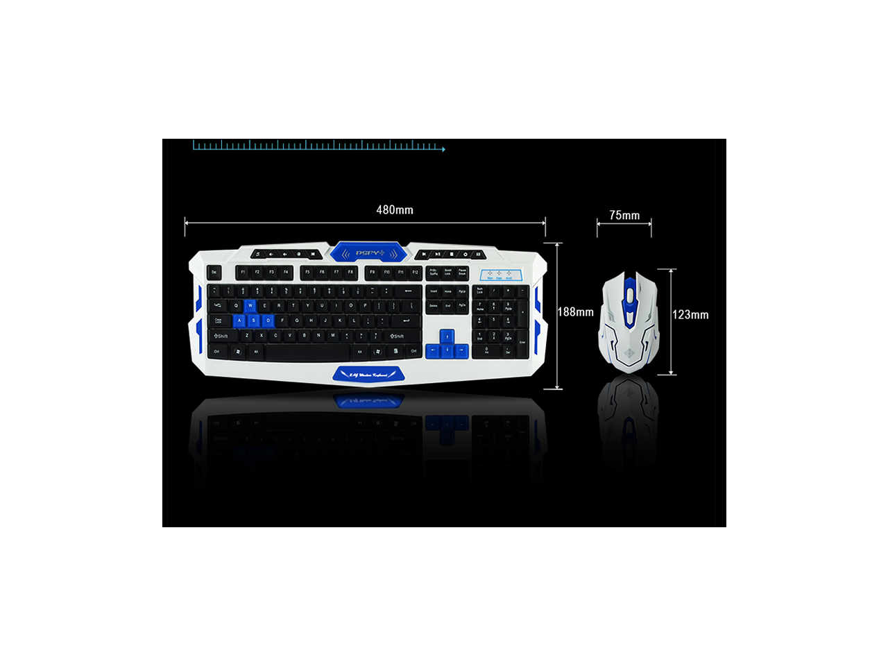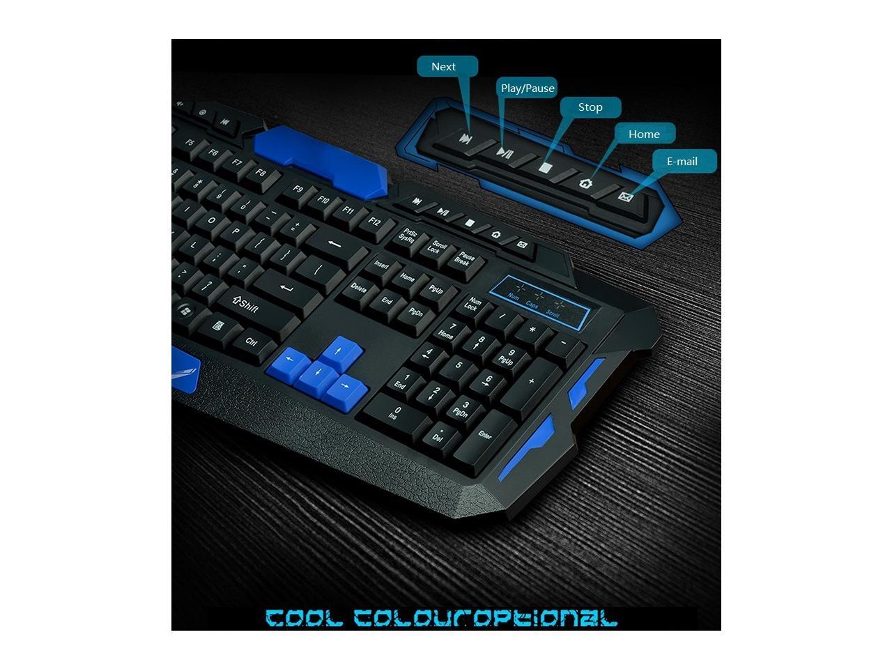 CORN Multimedia Wireless Gaming Keyboard and Mouse With USB RF 2.4GHz, Anti-Ghosting Feature & WaterProof Design - Black & Blue (Upgraded Version)