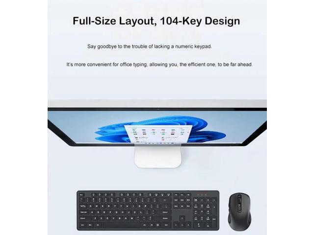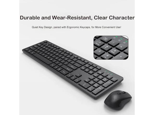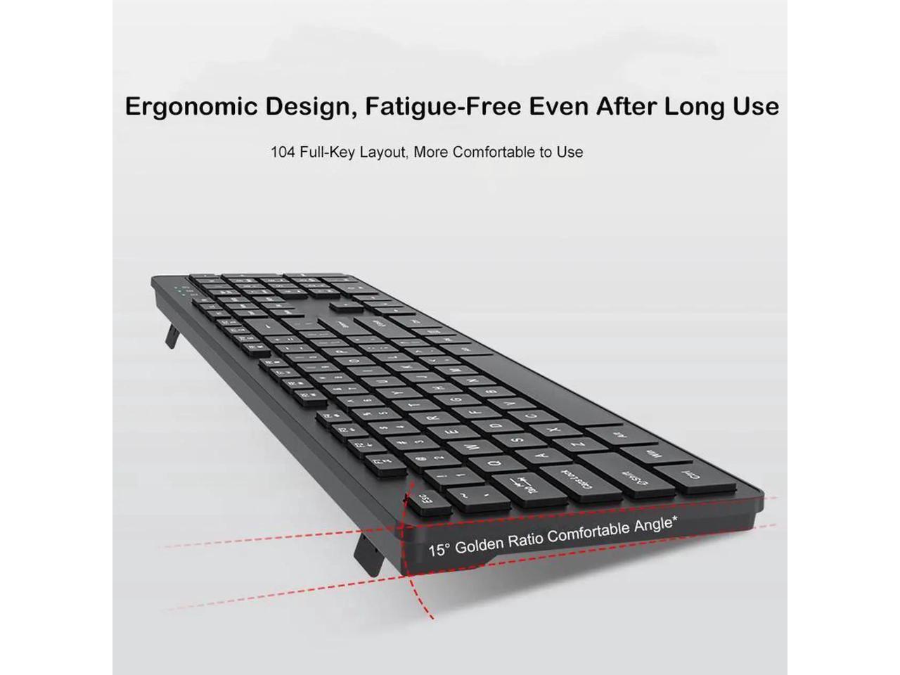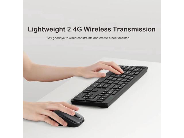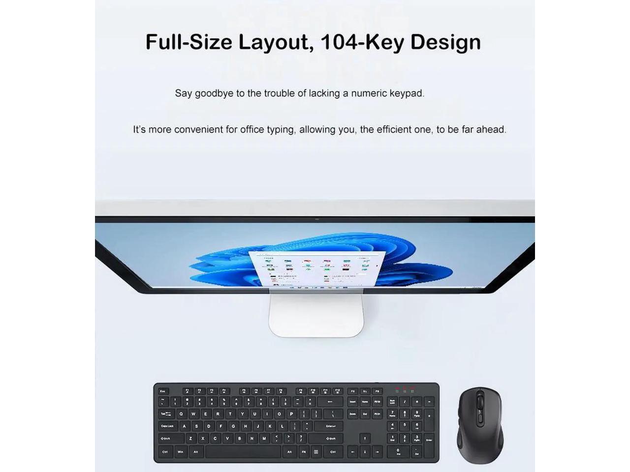 2.4GHz Full Size Wireless Keyboard and Mouse Combo, Ergonomic Design Compatible with Windows and Linux, 800/1200/1600 DPI - Plug and Play