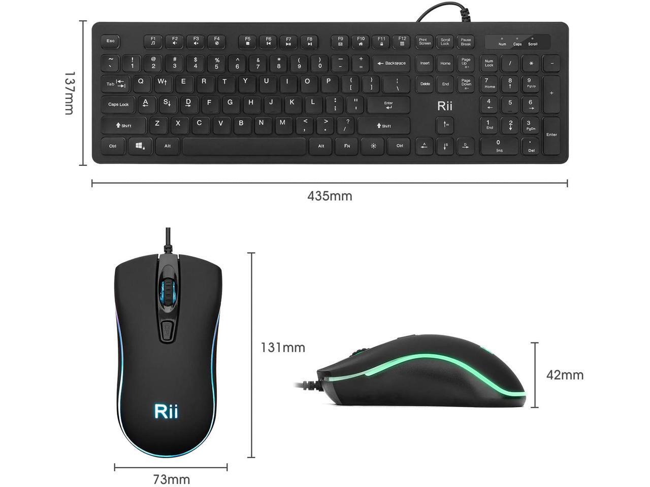 Rii RGB Backlit Business Keyboard,Gaming Keyboard and Mouse Combo,USB Wired Keyboard,RGB Optical Mouse for Gaming,Business Office