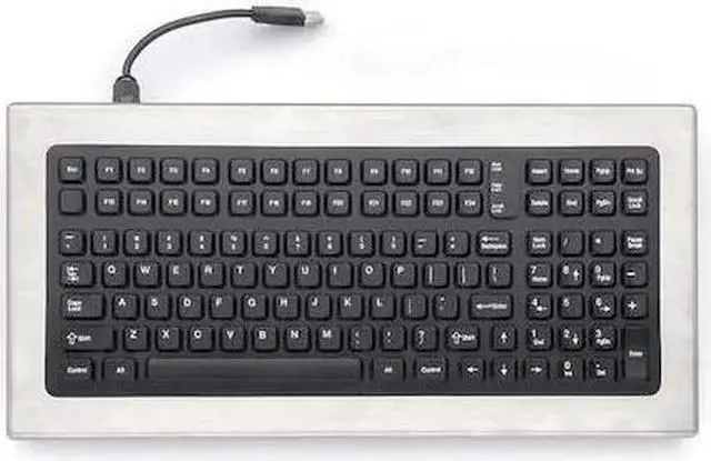 Keyboard, Corded, Ergonomic Design No, USB Connector Type, Black, Cable Length 10 ft, Compatible With Linux (R), Windows (R), Length 16 1/4 in, Width 7 7/8 in, Height 1 51/64 in, Features Industrial Keyboard. This item has been restricted from sale in the following state (s): []