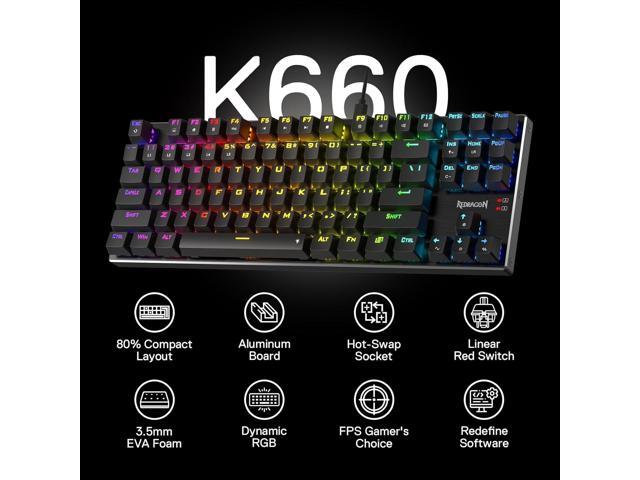 Redragon K660 (K556 TKL) RGB Wired Gaming Keyboard, 80% 87 Keys Mechanical Keyboard w/Aluminum Base, Upgraded Hot-Swap Socket and Noise Absorbing Foams, Quiet Linear Red Switch