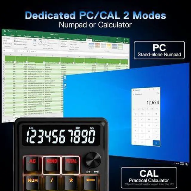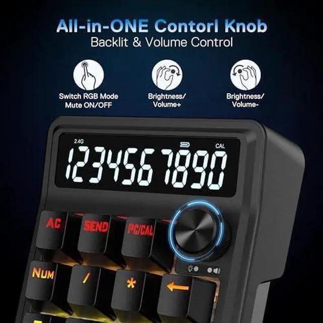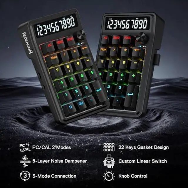 Redragon K733 PRO Wireless Gasket RGB Number Pad, 22 Keys Mechanical Numpad w/PC & Calculate Modes, 10 Digits Calculator Display, Knob Control, 5-Layer Noise Dampening, Creamy Custom Linear Switch