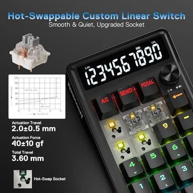 Built-in multiple preset RGB modes allow it to perfectly match your main keyboard and desktop RGB setup. Easily switch modes and adjust brightness with the intuitive rotary knob.