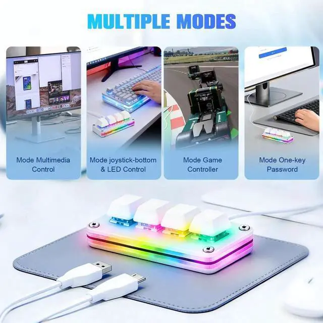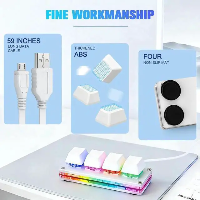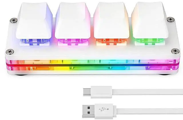 White Mini 4-Key Keypad Mechanical Gaming Keyboard, Self Programming,OSU Hot Swap Game Keyboards with 1.5m USB-C Data CableUpgrade Cherry Shaft &RGB LED