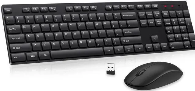 Wireless Keyboard and Mouse Combo,Silent Full Size Cordless USB Keyboard Mouse, 2.4GHz Lag-Free, Long Battery Life, for Computer, Laptop, PC, Chromebook, Windows (Black, 1 Pack)