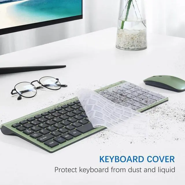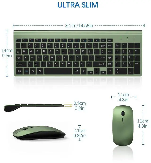 Ultra-Slim and Portable DesignWireless pc keyboard has 14.55x5.5x0.2in, ultra-thin ABS plastic body, which can save space and easy to carry. Kit keyboard and mouse wirelesss sleek design is super match with office desk. Perfect for business travel, office, home, library and many public occasions.
