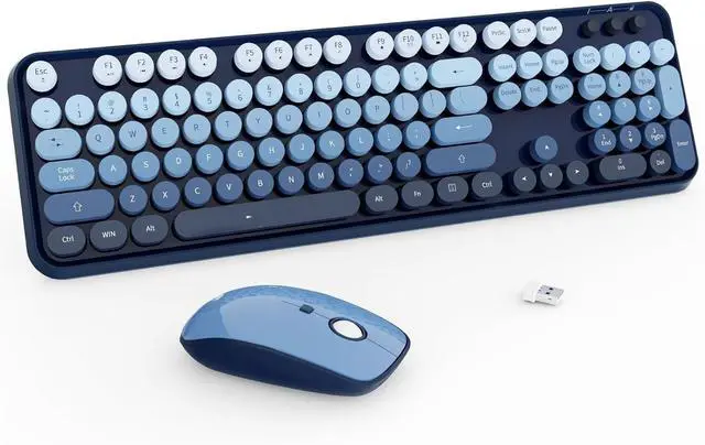 • Retro Floating 104 Round KeycapsThe typewriter keyboard wireless and mouse combo with High Profile loud 104 Retro Round keycaps can release your wrist pressure,typing smoothly,gives you the most comfortable typing experience. All circle buttons can be disassembled, put in water to clean. The 104 keys full size colorful wireless keyboard and mouse are perfect for expressing your unique personality. It is a must-have for back to school home office work.