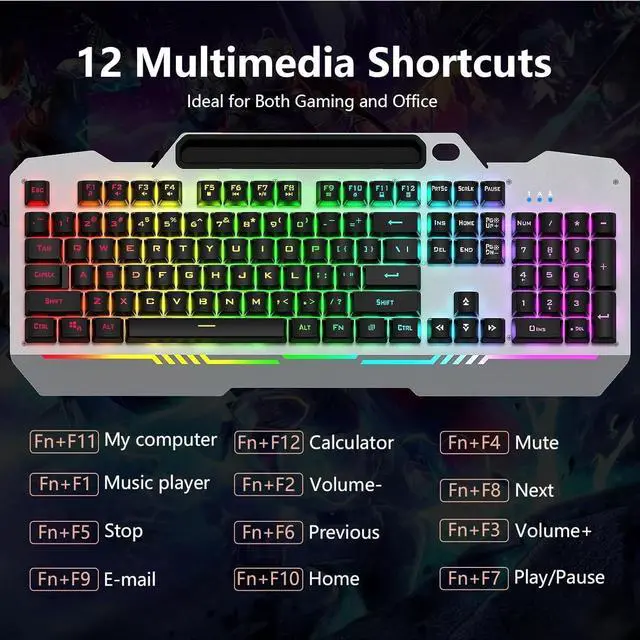 RGB Rainbow Backlit Keyboard: The keyboard mouse combo is through rainbow backlit keyboard and RGB breathable backlit mouse, you can customize the keyboard backlight/brightness/speed. The glitter keyboard offers 3 illumination modes and 3 brightness levels to choose from. FN+PgUp/PgDn: Backlight brightness and speed adjustment; Fn+1: Adjust the backlight mode (Constant Light/Breathing/Heartbeat), can be turned off if not needed