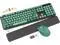 FOR-Wireless Keyboard and Mouse Combo - Cute Typewriter Keyboard with Detachable Wrist Rest, Retro Round Keycaps, Foldable Legs, 2.4GHz Keyboards for PC Laptop, Mac, Windows (Black and Green)