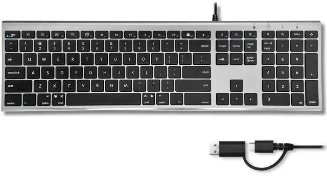 Experience efficient typing and universal compatibility with the FOR-USB C Keyboard (Upgraded). This ultra-slim wired keyboard is designed for modern workspaces, featuring a versatile 2-in-1 USB C and USB A plug for effortless connection to both newer and legacy devices. With 110 precision-engineered scissor keys, it delivers a smooth and responsive typing experience. The keyboard includes 20 convenient shortcuts, optimizing productivity for Mac users. Its space gray finish complements contemporary setups, while the compact profile saves valuable desk space. Ideal for those seeking reliable performance and streamlined connectivity.