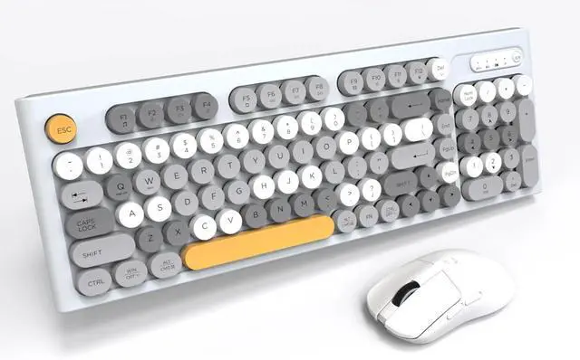 Enhance your workspace with the FOR-Wireless Keyboard Mouse Combo, designed for both style and performance. This full-size Bluetooth keyboard features vibrant, colorful round keycaps and an integrated numeric keypad, delivering a comfortable and efficient typing experience. The included silent 2.4GHz wireless mouse ensures smooth, quiet operation, ideal for both home and office settings. With advanced 2.4G USB connectivity, enjoy reliable, lag-free performance and the ability to connect up to three devices seamlessly. The sophisticated gray color complements any modern setup. Compatible with a wide range of devices, this set offers versatility and convenience for everyday computing tasks.