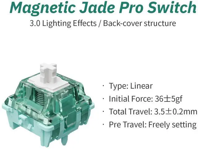 [Keyboard Switches] GATERON Magnetic Jade Pro Keyboard Switches Adopts Rare Earth Permanent Magnet MaterialsIncorporates Special Precious Metal Casting, Featuring Strong Magnetic Remanence. Gateron new created key switches linear switches are special version custom key switches made for DIY enthusiasts to obtain satisfying typing feelings with more affordable options as they wish. No metal leaf, pins, optics or other sensitive hardware that suffers from wear, tear, and particles. This survives the test of times and lasts millions of presses. Broke one? Just swap it out for a new one.
