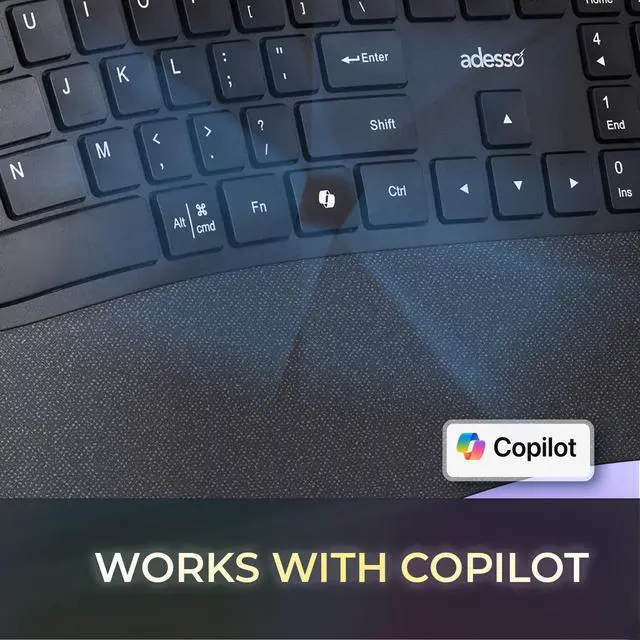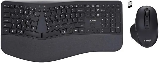 This wireless ergonomic keyboard and mouse combo features responsive scissor-switch keys for a comfortable, quiet typing experience and a precision mouse for smooth navigation-perfect for productivity and extended use.Fast Wireless PerformanceOur cutting-edge USB-A Receiver Wireless Connection for the Keyboard - the epitome of seamless connectivity and versatile functionality. Designed to enhance your computing experience.Ergonomic DesignThe design of this keyboard with splitted key zones and gently sloped shape encourages natural position of hands, wrists, and forearm in maximum comfort for long use.Complete ControlGet instant access to your commonly used Internet and multimedia tools with the 20 built-in hotkeys this keyboard has to offer.CoPilot Ai HotkeyThe Copilot AI hotkey on your keyboard provides instant access to an advanced AI assistant designed to assist you in various tasks. Simply press the designated hotkey, and Copilot AI will be ready to generate code, provide creative suggestions, or assist you with language-related tasks. It's your quick and efficient way to harness the power of AI right at your fingertips.Slim, Quiet and Fast Scissor Switch KeysThe scissor-switch keys not only offer a faster, quieter and more responsive typing experience, but also provides comfort, speed and better tactile feel.DPI Switch & Navigation HotkeysQuickly and easily adjust mouse DPI resolution (800/ 1200/ 1600) for a faster response with the convenient DPI Switch located at the top of mouse. This mouse also includes two convenient side internet forward & back buttons for quick Internet navigation.