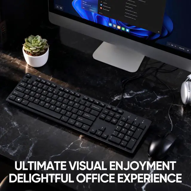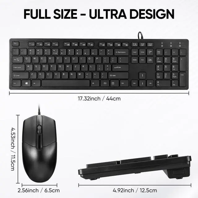 Plug and play:This wired keyboard mouse combo is plug and play, no needed install any drivers, wired connection can provide more stable signal input than wireless connection, more responsive typing.